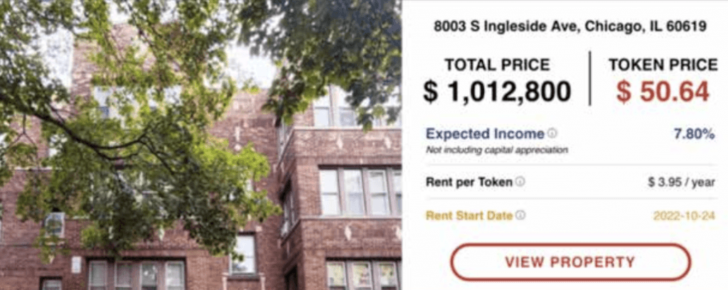 在 Roofstock onChain(实体房屋的 NFT 市场)上,房主可以将其房屋转让给 LLC(有限责任公司),并为 LLC 铸造 Home onChain 代币。 当买家购买代币时,他就拥有 LLC,而 LLC 直接拥有房屋。 技术证明,人们可以在部分所有权平台或 STO 平台上列出其财产,以铸造代币并在该平台上列出代币,并以与代币持有者分享股息或租金的形式提供投资回报。